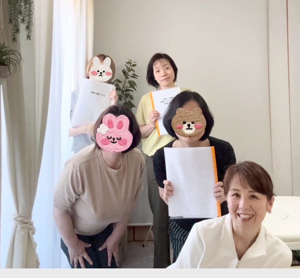 左側、白衣を着ている方が武庫之荘でサロン経営している講師の埴淵先生。