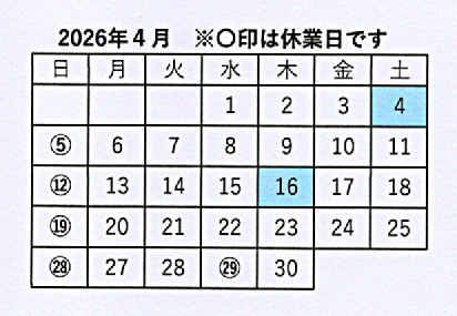4月営業時間のおしらせです。